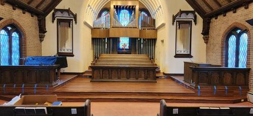 In March, Chandler Hall saw beautiful new flooring installed in the sanctuary and reception areas. By May, the sanctuary carpeting was fully replaced, and in July the final phase brought fresh carpeting to Chandler Hall’s entryway and the staircase leading to the balcony pews.